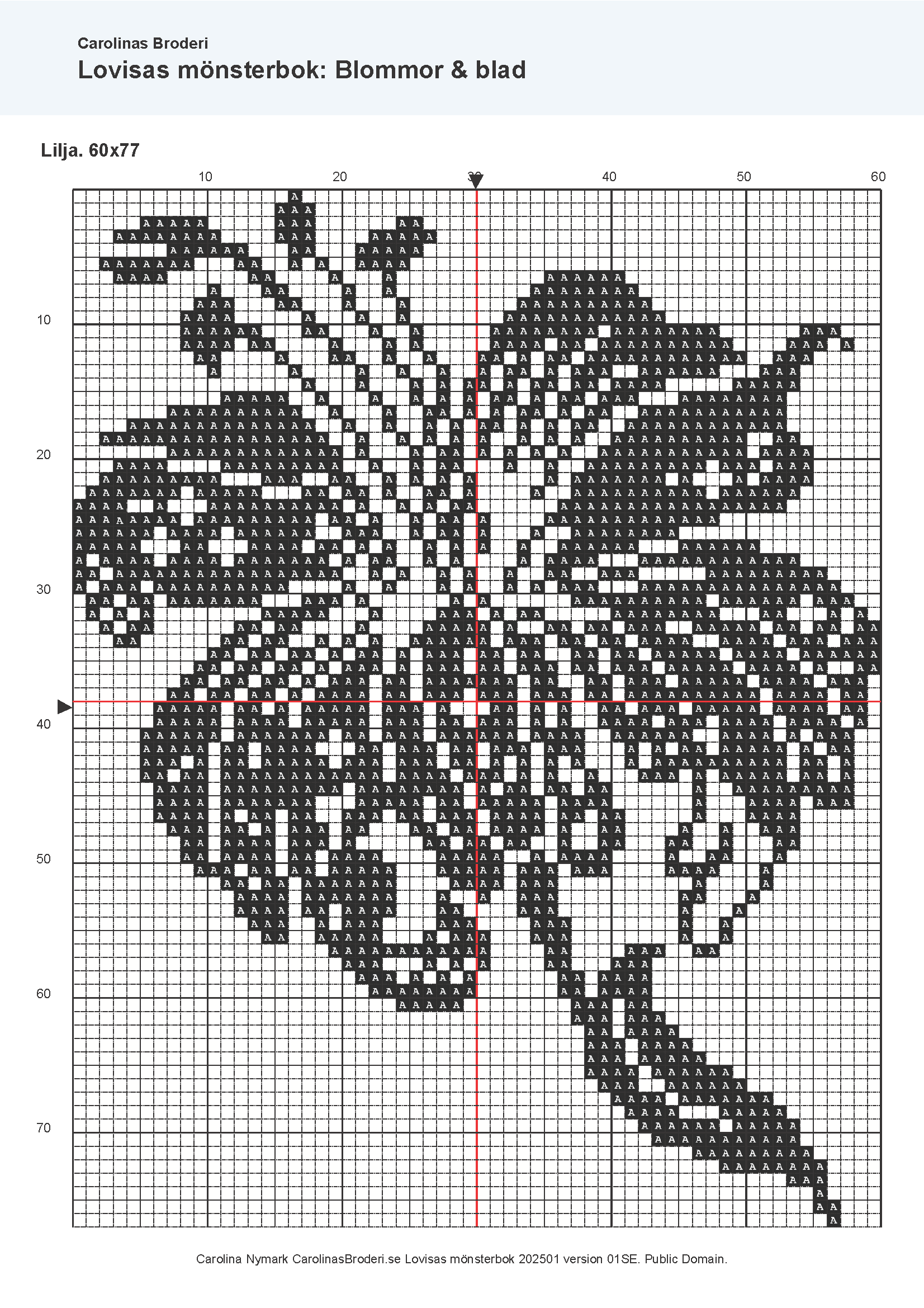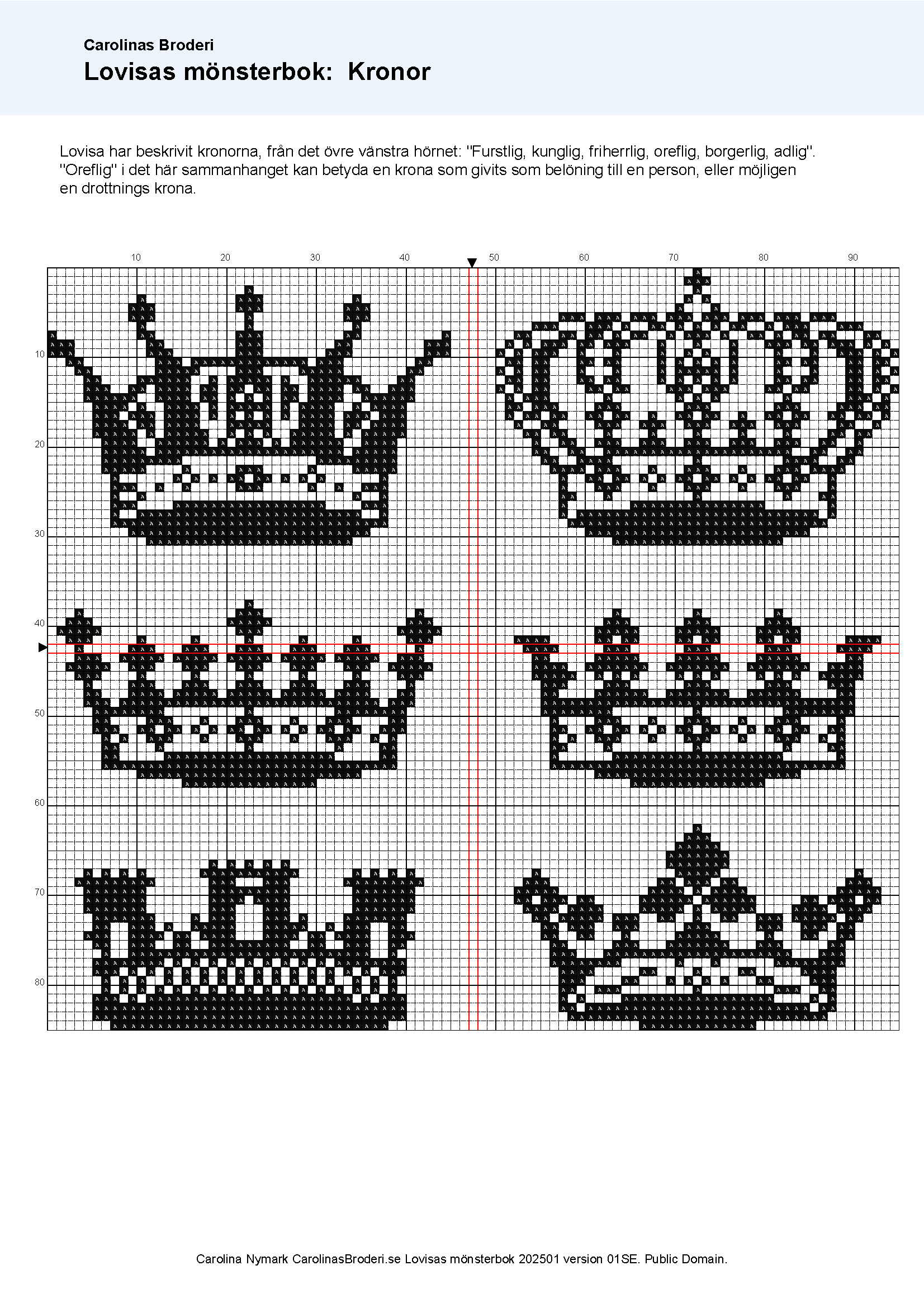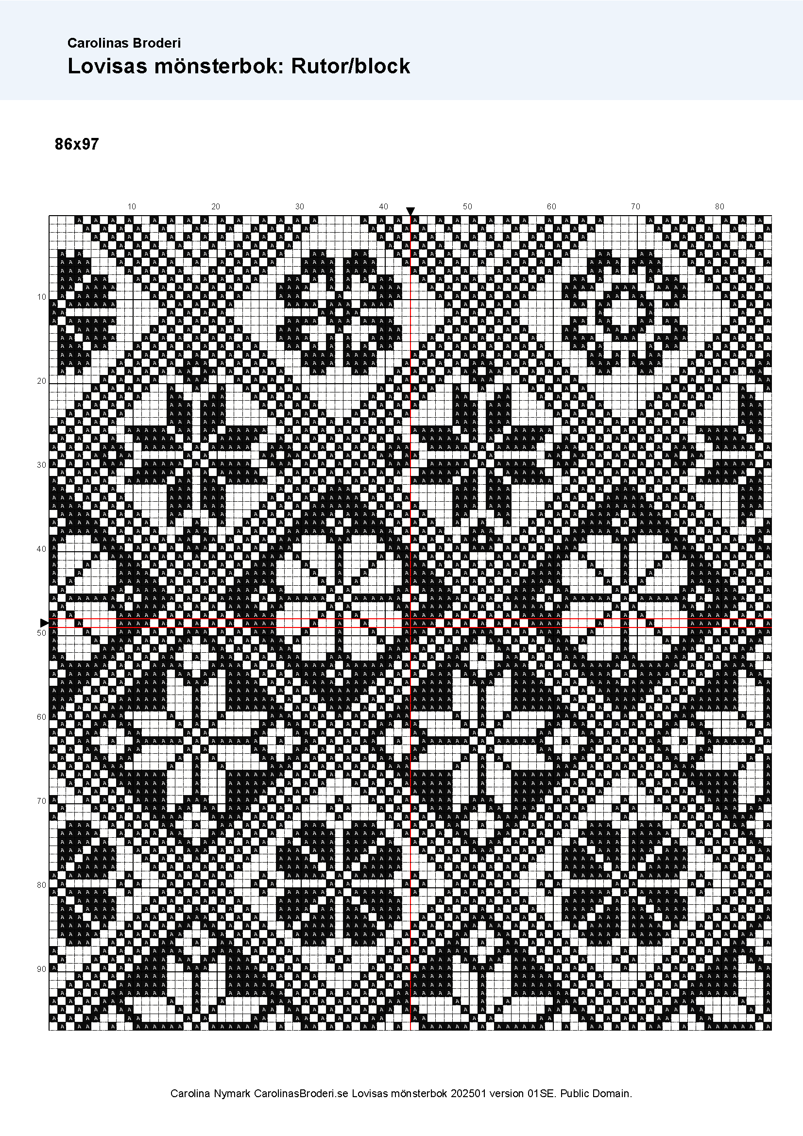 Därför är filen gratis och licensen är CC0, Public Domain. Dela och ”återbruka” gärna mönstren, och visa gärna hur du har använt dem i dina broderier.