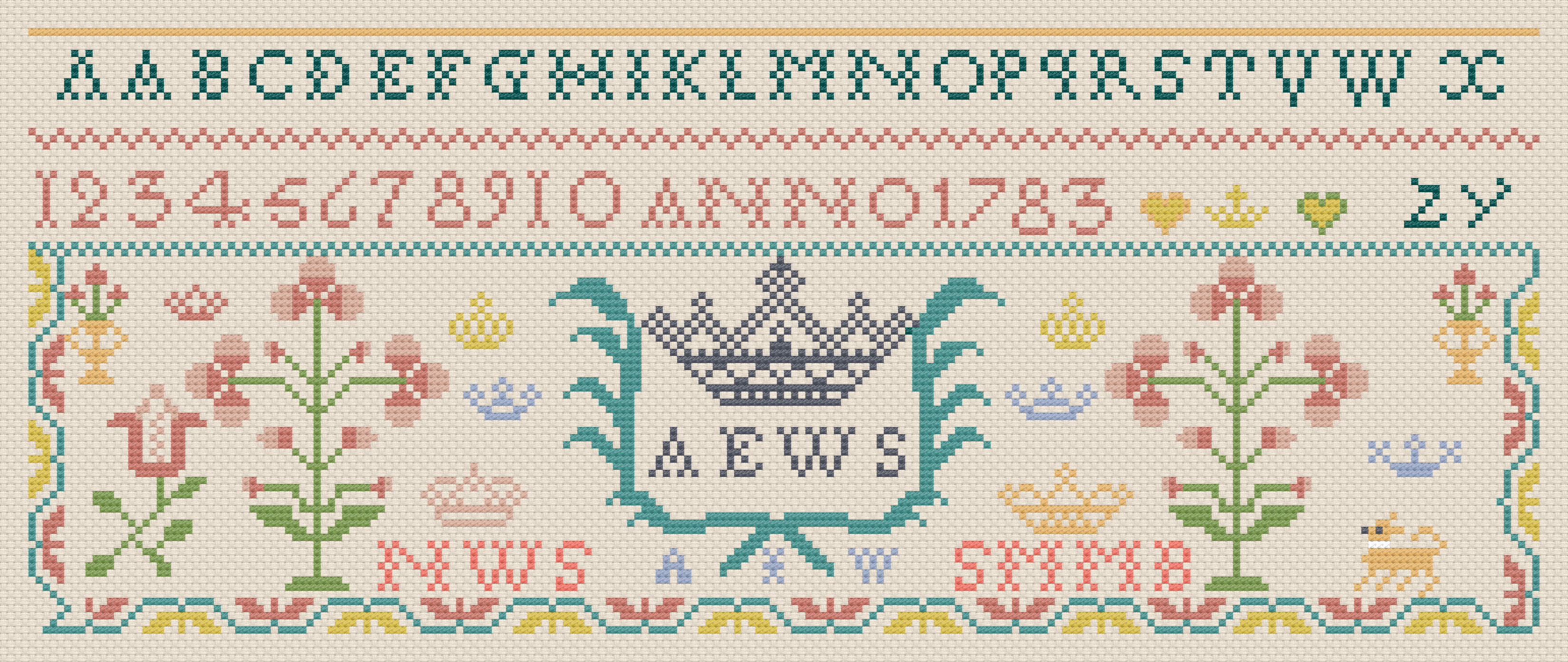 Mönster efter en svensk märkduk märkt AEWS NWS AIW SMMB 1783.