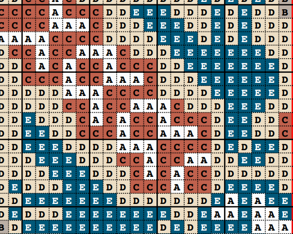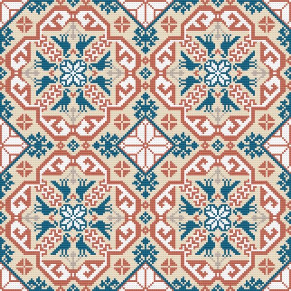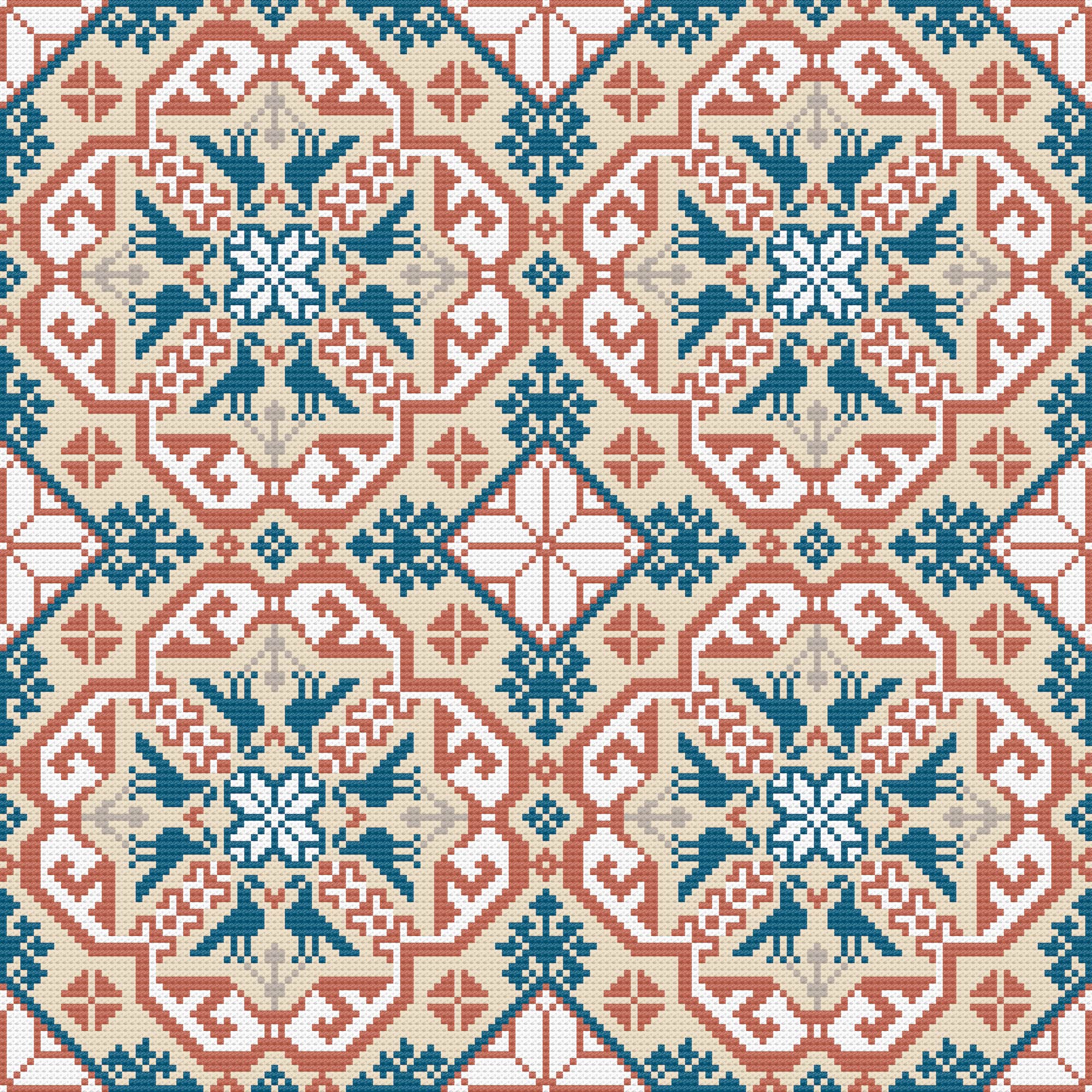 -När jag skapade mönstret utifrån ett fotografi kunde jag inte fastställa vilka områden som var broderade i korsstygn och vilka som var tvistsöm. För enkelhetens skull har jag därför endast använt mig av hela korsstygn.
