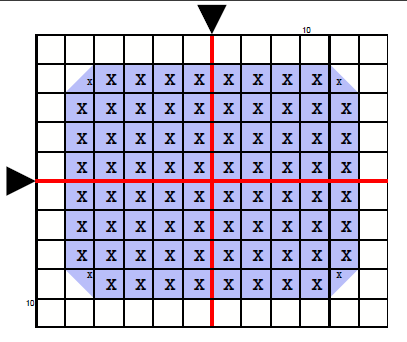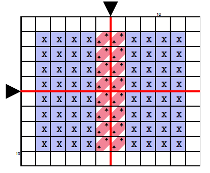 Varje symbol i rutnätet motsvarar ett stygn med en specific garnfärg. Mittpunken i mönstret är markerad med en tjockare linje, ofta i en annan färg. Det gör det lättare att läsa kolumnerna och raderna i korsstygnsmönstret och räkna ut vart du ska placera nästa stygn.